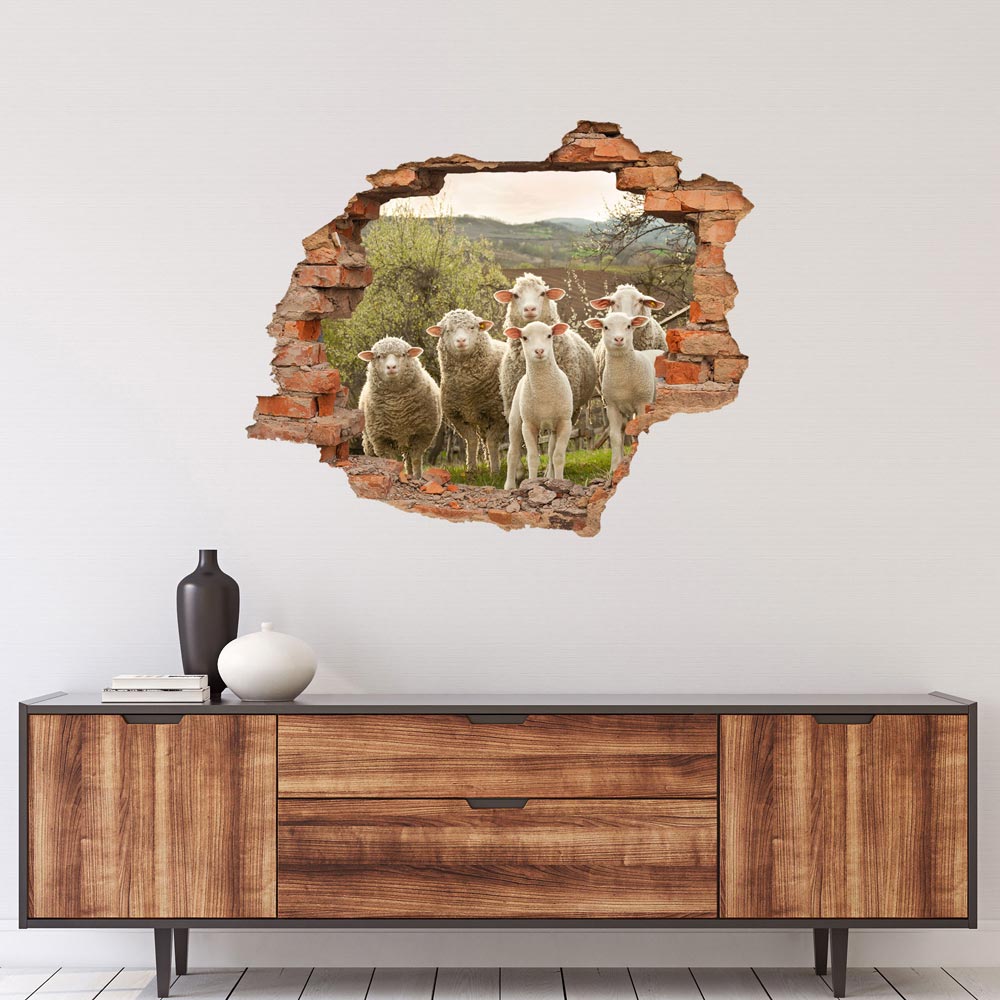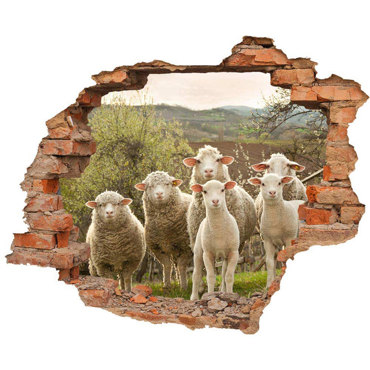 Wandtattoo: Wanddurchbruch mit Schafe